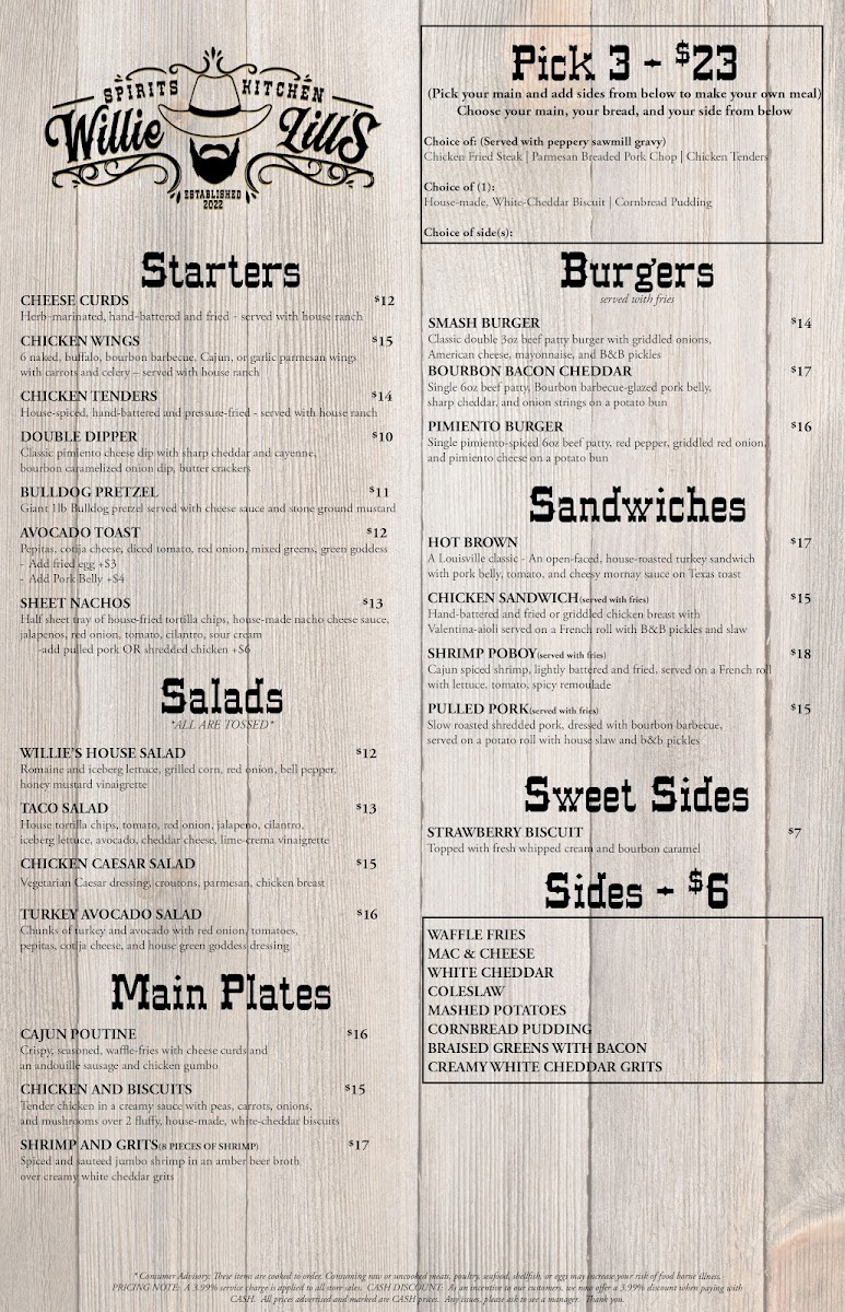 Welcome to Willie Lill's Spirits & Kitchen, a vibrant gem nestled at 433 W Diversey Pkwy, Chicago, IL. This newly opened establishment combines a cozy ambiance with a menu that celebrates the richness of Southern comfort food, crafted to satisfy both the palate and the soul. As you step inside, you’ll find a warmth that invites enjoyment, whether you’re seated at the bar, indulging on the patio, or gathered around a table with friends.
