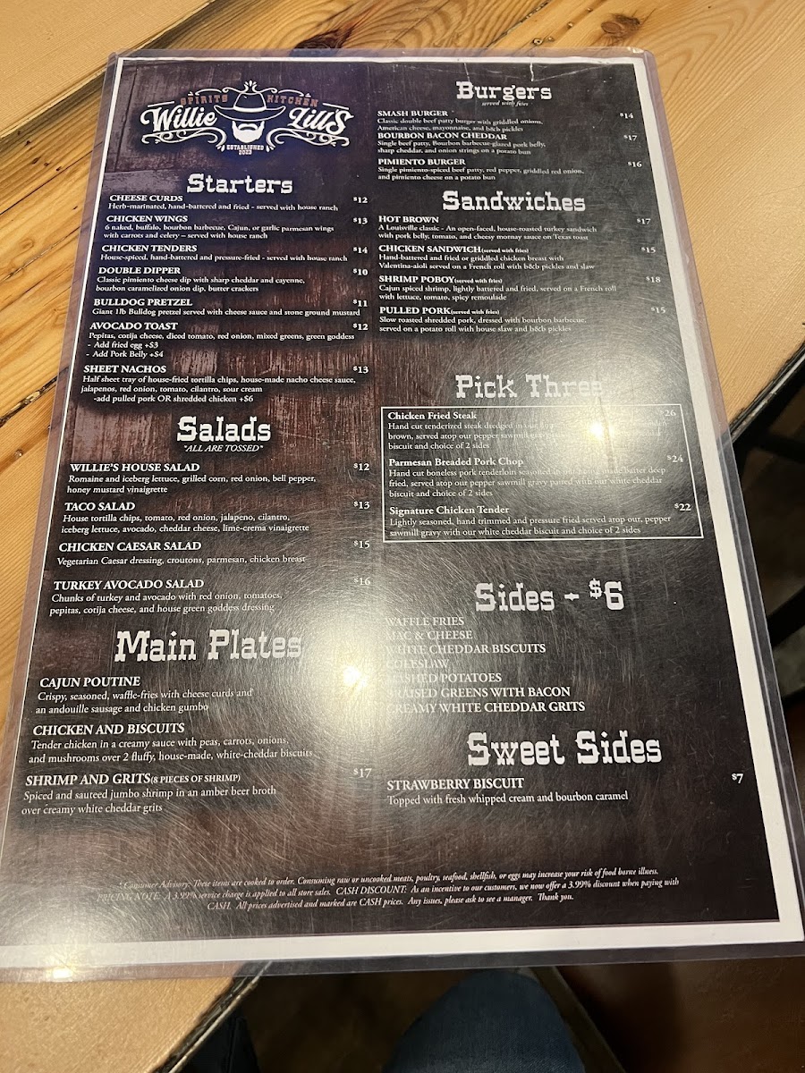 For families or groups looking for a comfortable and welcoming spot to bond over good food and drinks, Willie Lill's does not disappoint. With options like the comforting Cheddar Biscuits and warming Sawmill Gravy, the menu feels like a warm hug on a plate. Each dish is thoughtfully prepared, reflecting the skill and passion of their kitchen team.